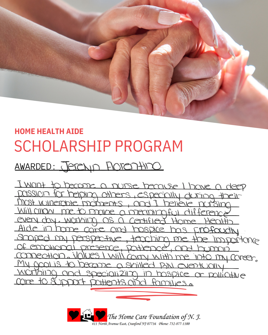 The Home Care Foundation of NJ annually awards Home Health Aide Scholarships to Certified Home Health Aides pursuing nursing degrees.